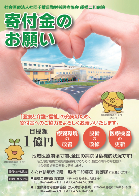 ぜひ医療と福祉・介護の充実のため、皆さんのあたたかいご支援(寄付金)をお願いいたします。